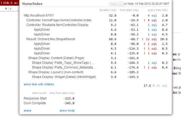 MiniProfiler 1.8.1.0 Download Module which delivers profiler functionality. Mvc Mini profiler (http://code.google.com/p/