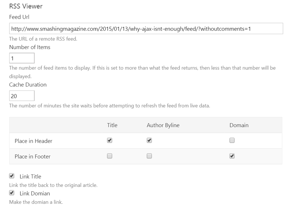 - Add a RSS viewer part to a content type or add it to pages as a widget.