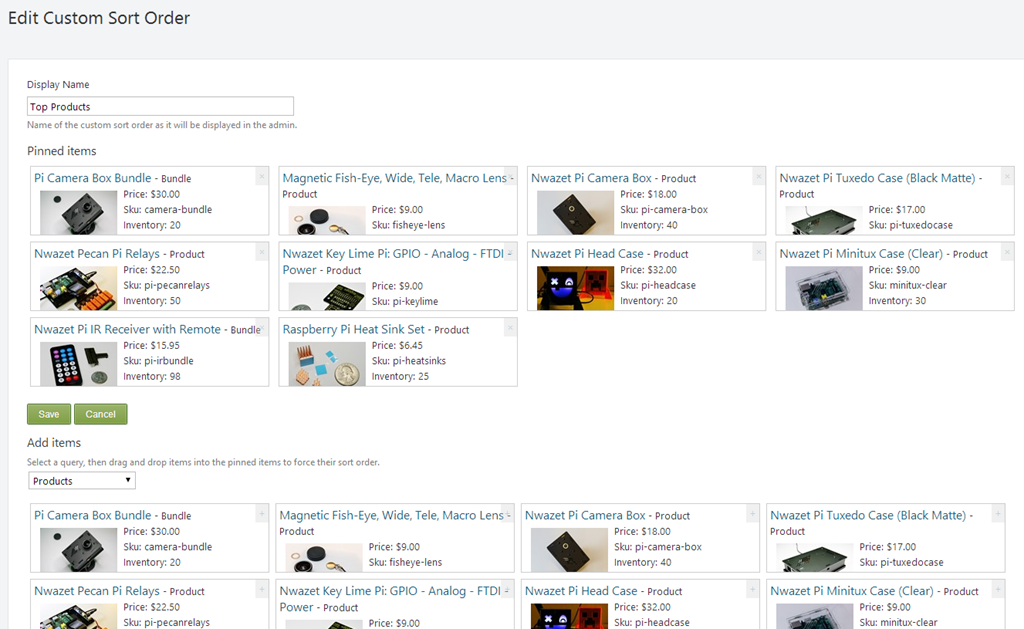 Custom Sort (new!): Drag and drop content items to create custom sort orders that can then be used in projections.