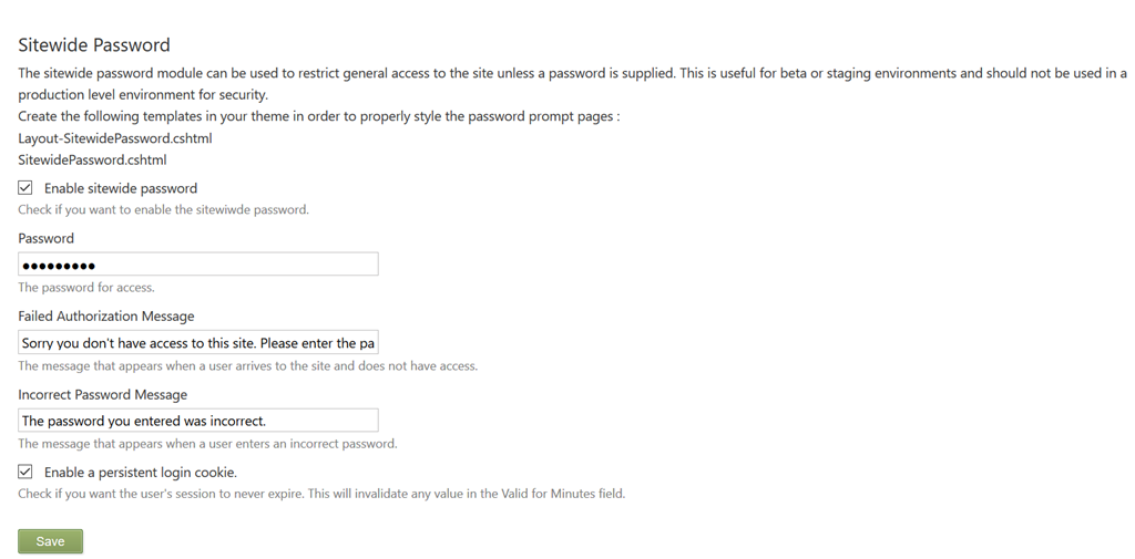 Sitewide Password 1.0.0.0 Download A custom module to add a sitewide password for staging scenarios.