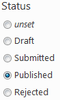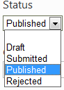 The ChoiceList module introduces a new field to store multiple-choice value items (drop-down list) as custom types. You can specify a set of options (Draft;Submitted;Approved;Denied) and the field must contain one of those values.