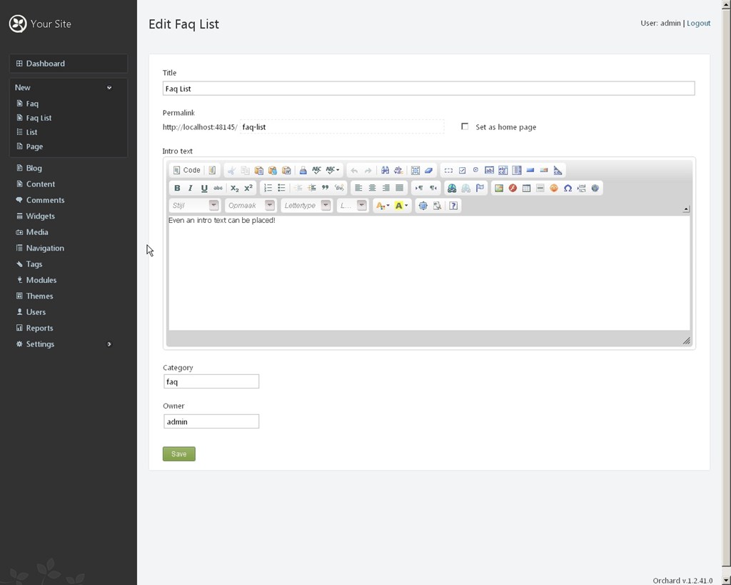 - WARNING!* This is my first module and experience with Orchard. Please don't use this in a production website unless you've tested it first!