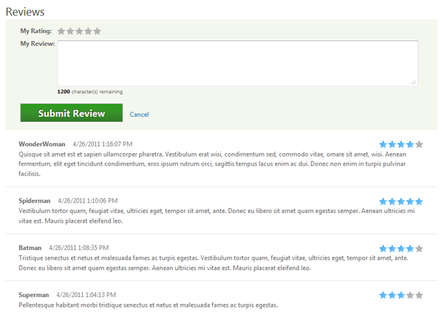 Contrib.Reviews 1.0.2 Download Allows users to leave ratings and reviews on content items. A review consists of a 5-star