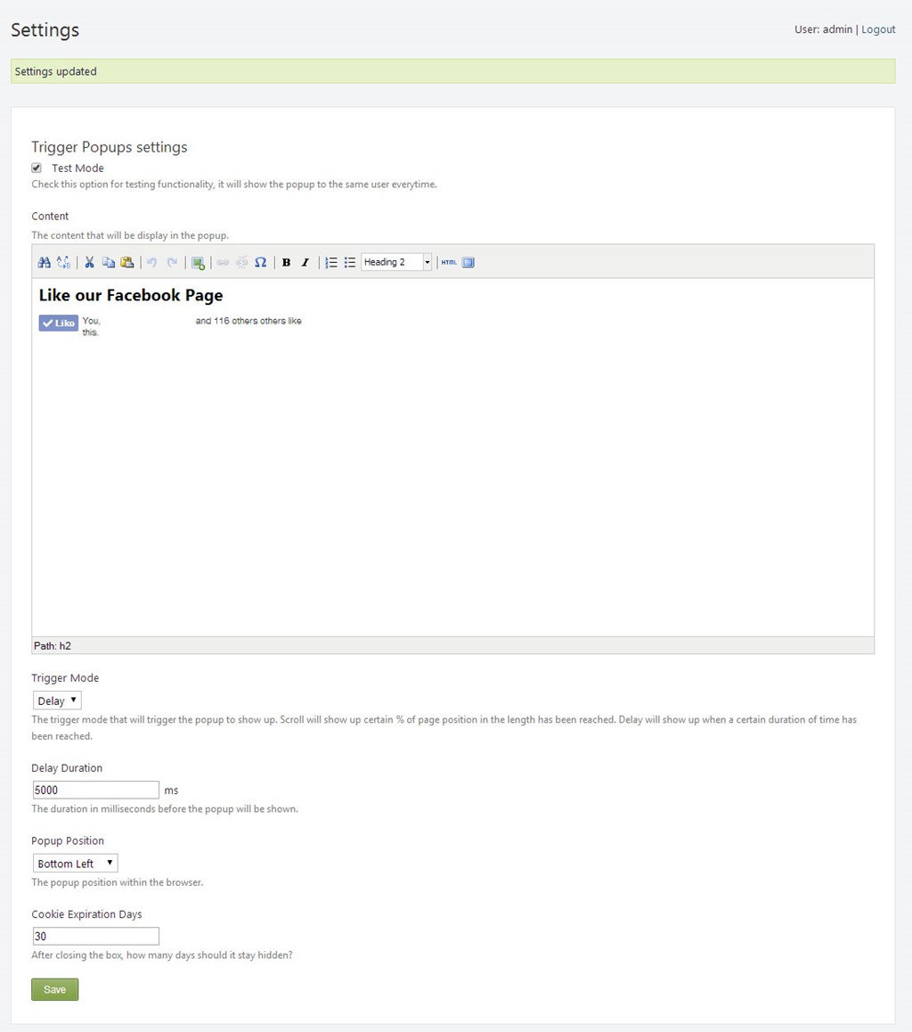 Show an unobtrusive popup on page scroll or delay, ideal for newsletter signups and promoting any news or social pages.
