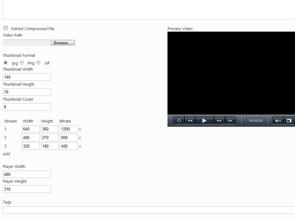 If you are not able or simply do not wish to install Expression Encoder Pro on the web server you can instead upload the needed Smooth Streaming files (*.ism, *.ismc, *.ismv and thumbnails) in a zip file - the module will take care of the rest.