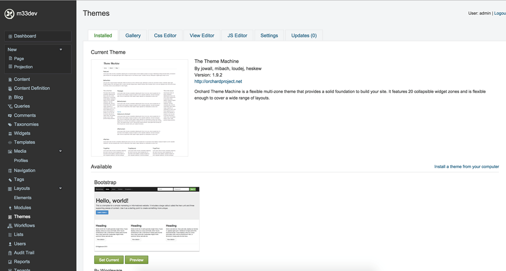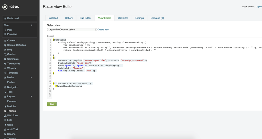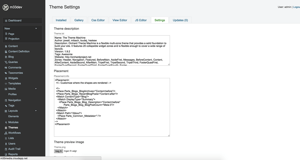 Theme Editor 1.4.5 Download Create/edit Javascript, CSS and Razor files and select a page template/layout for a page.