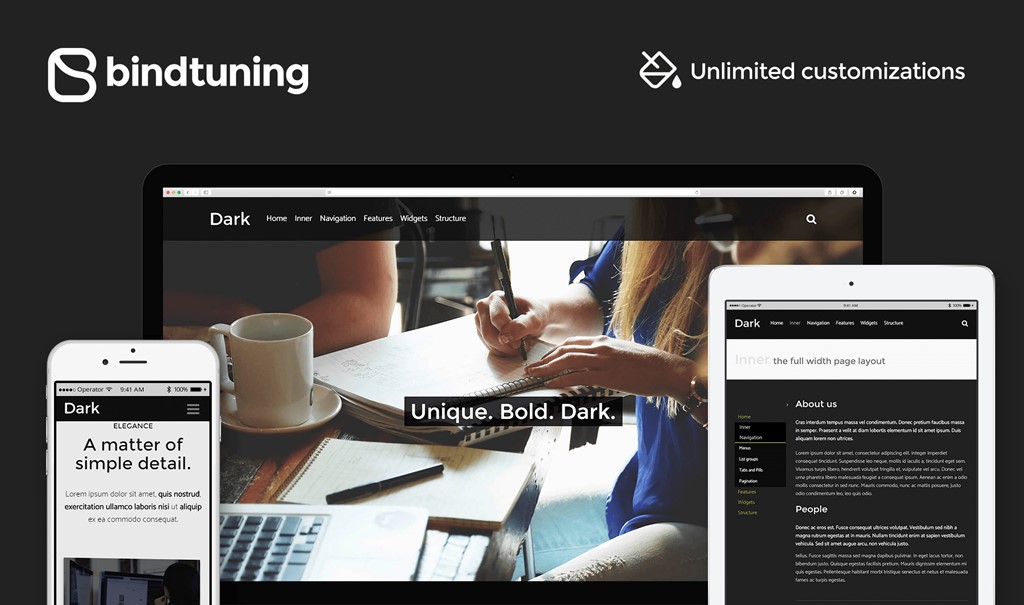 Dark features responsive design, so now your website will smoothly adapt to all mobile devices. No need for mobile-specific themes or web pages!