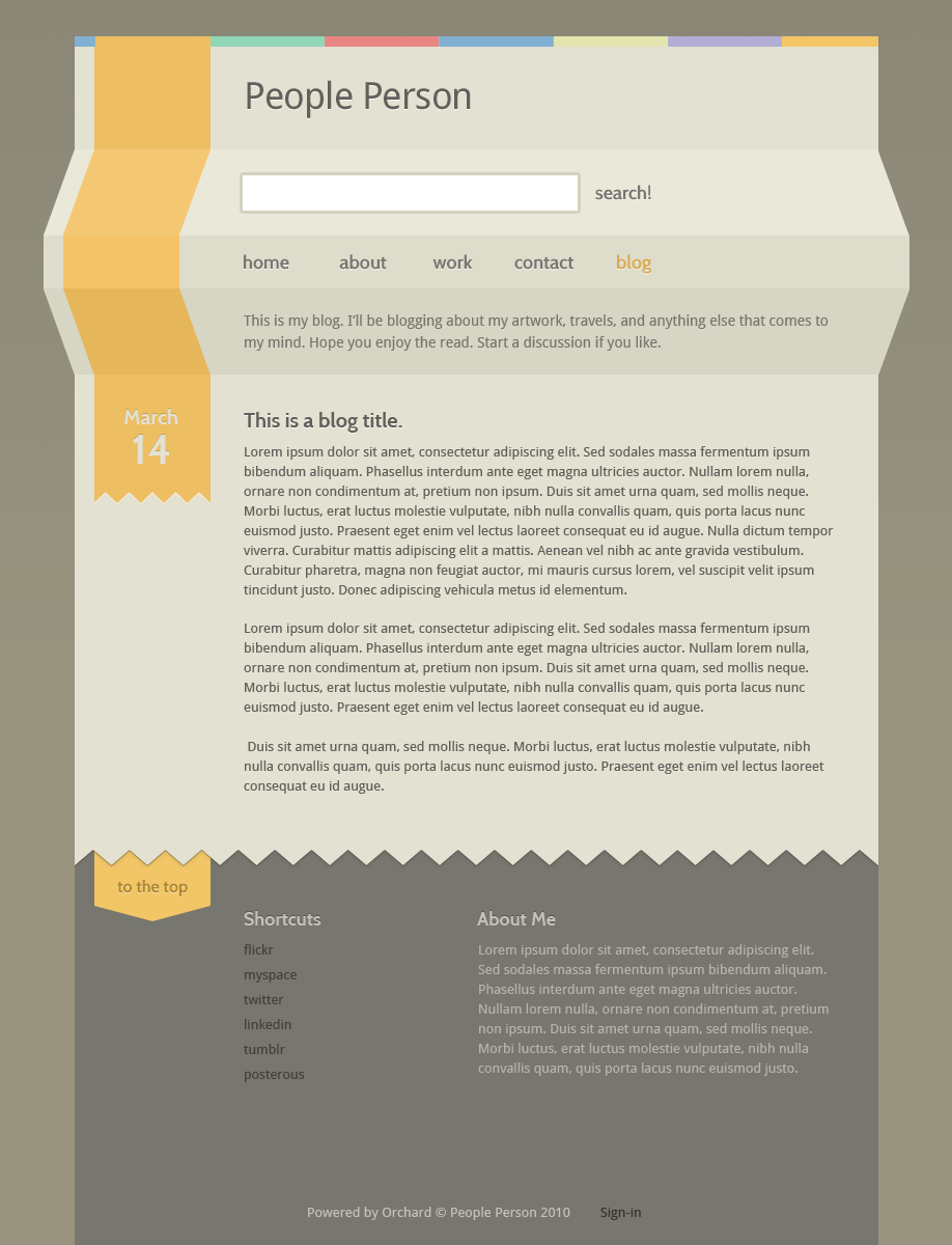 People Person is a beautifully crafted and layered theme that can add dimension to any personal site or blog. The earthly colors and layered effects adds a sense of warmth and provides a great backdrop for your thoughts.