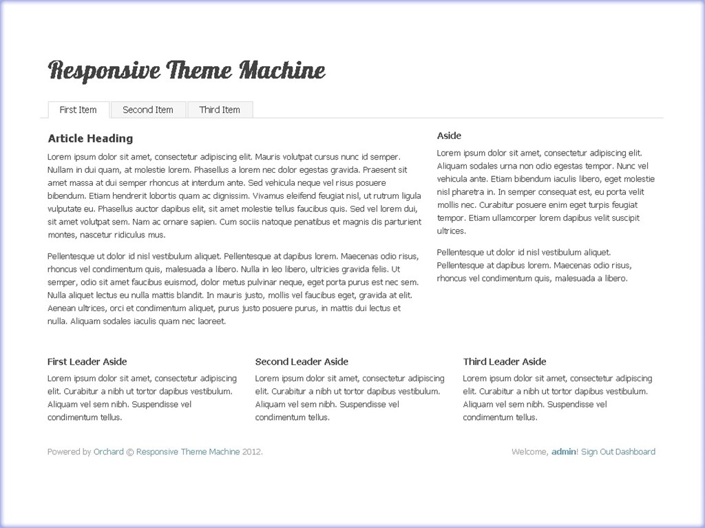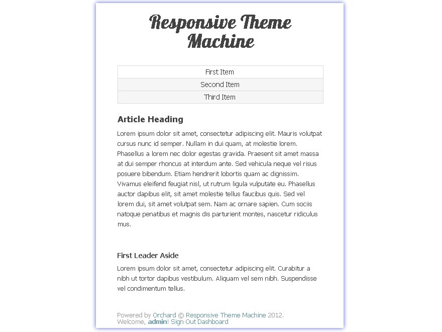 Responsive Theme Machine 2.1 Download Orchard default theme with a "mobile-first" responsive design.