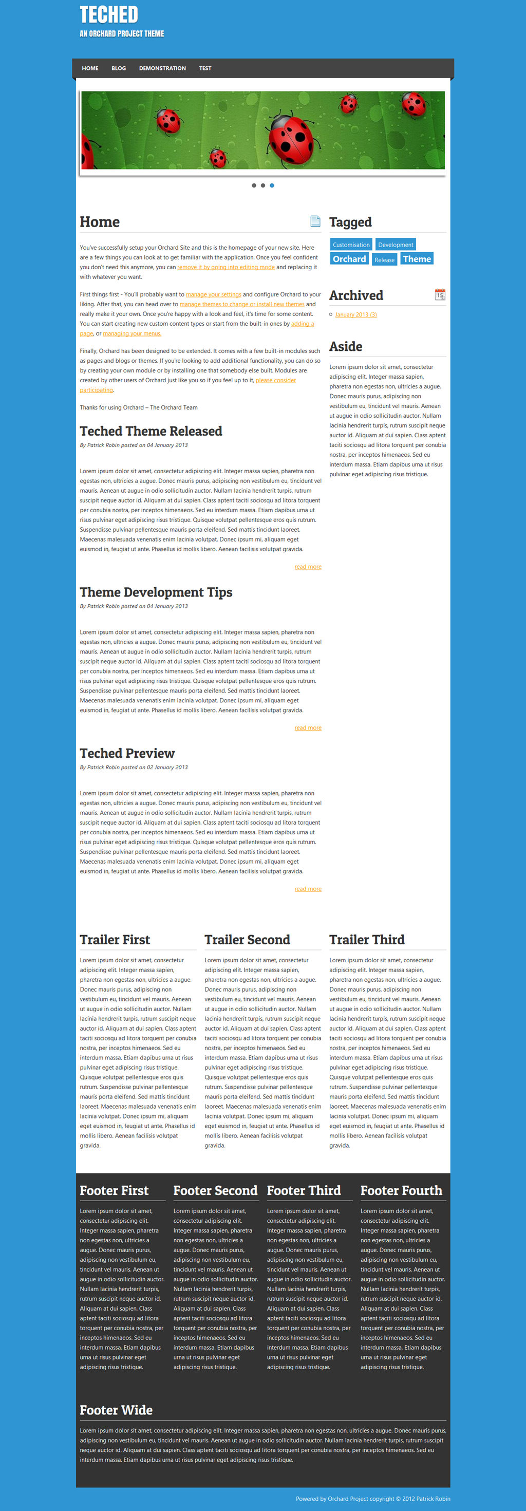 A contemporary theme inspired by TechED europe site featuring a responive layout with multiple zones for widget placement.