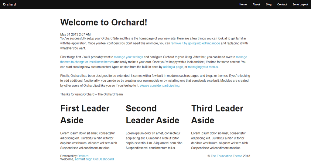 The Foundation Theme 1.0 Download This is a foundation 4 based theme for Orchard CMS v1.6.1. Foundation is an advanced respo