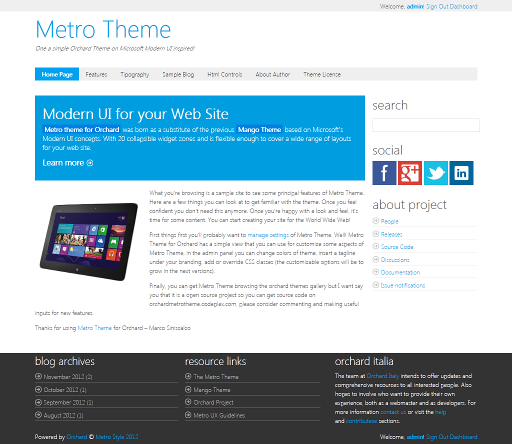 HELP OF USE Download a sample use on http://orchardmetrotheme.codeplex.com/