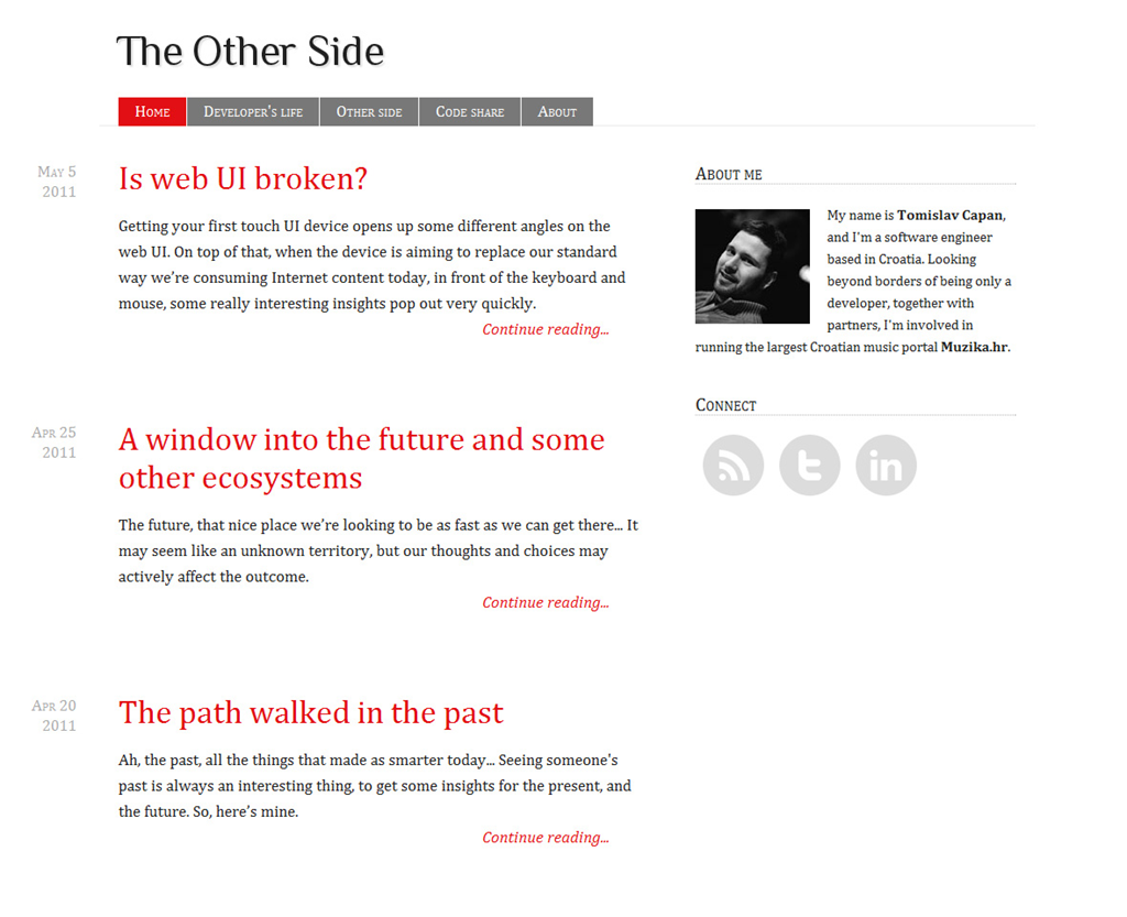 'The other side' is a light and clean theme with nice typography, designed primarily for blogs.