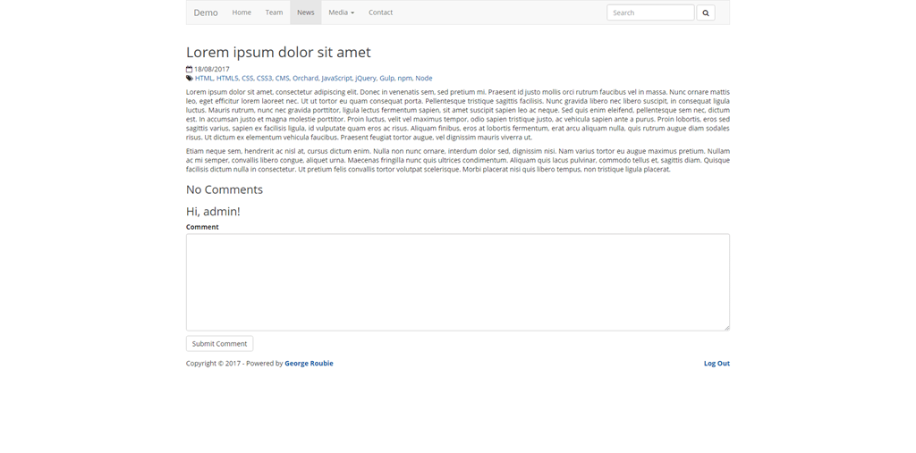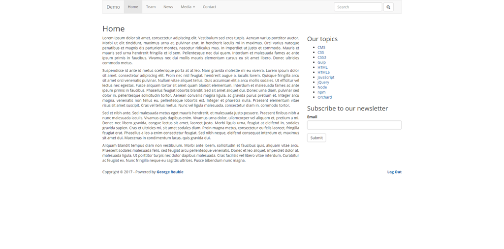 Responsive Theme for Developers optimized for Orchard 1.10.2. Features: